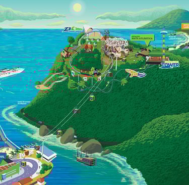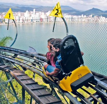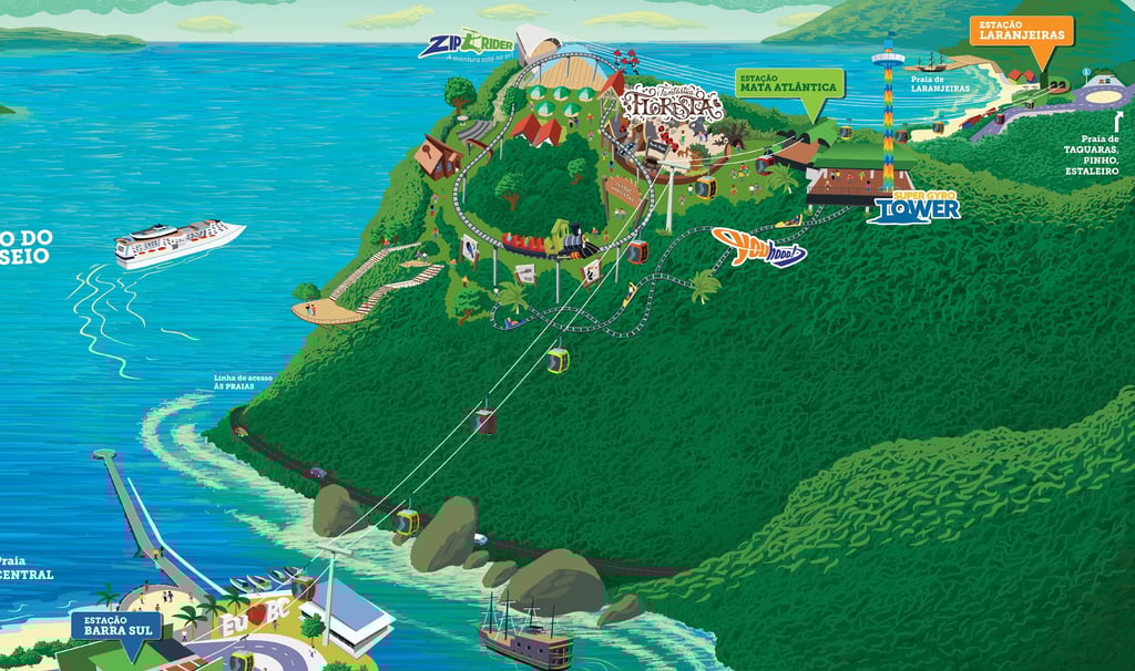 Embora o Canascenter seja o seu QG em Floripa, a gente sempre recomenda um pulinho em Balneário Camboriú, e o Parque Unipraias é o motivo número um! É o único sistema de bondinhos no mundo que liga duas praias, com uma parada estratégica no topo do Morro da Aguada. A vista lá de cima? Simplesmente surreal!